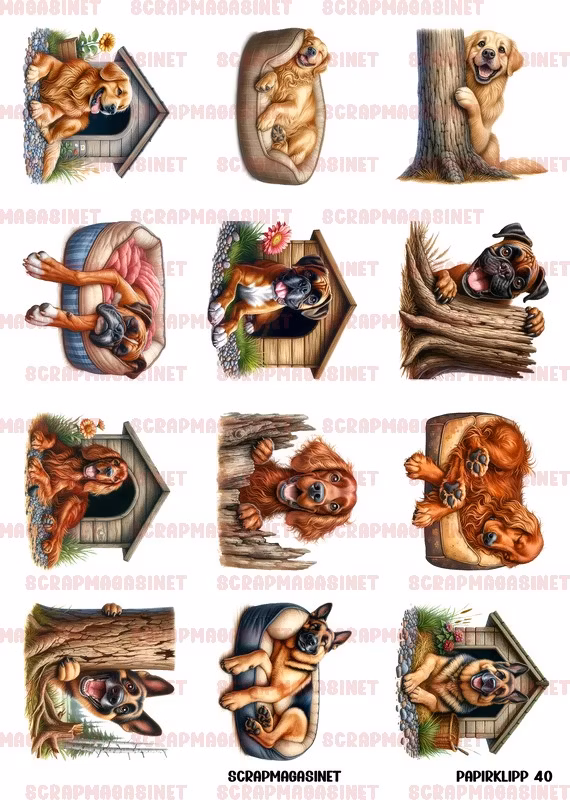 Papirklipp 40 - Golden retriver boxer irsk setter shæfer A4 19.00 NOK A4 ark med store gøyale motiv som vist. 250gr. Legg i handlekurv Lagerbalanse: 24 Del Informasjon Tilbakemeldinger A4 ark med store gøyale motiv som vist. 250gr.